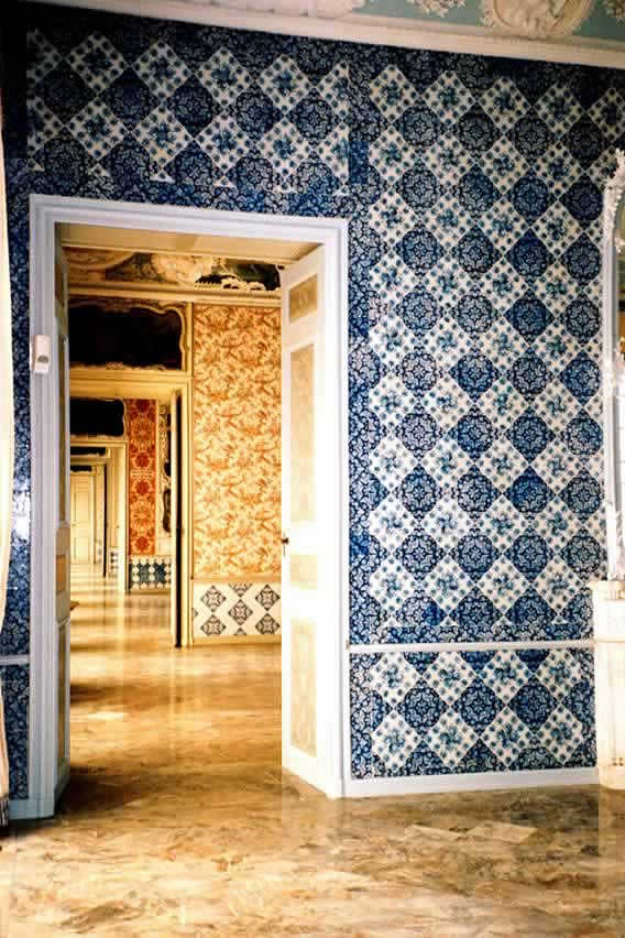 Wertvolle Bestandteile der Innendekoration des Sommerappartements von Schloss Augustusburg waren und sind Wandbekleidungen aus niederländischen Fayencefliesen. Sie finden weltweit große Beachtung bei Wissenschaftlern und Freunden historischer keramischer Fliesen. Blaue Bemalung auf weißem Grund verleiht den Räumen angenehme Kühle. Weiß und Blau sind die Farben des Geschlechts der Wittelsbacher, dem Kurfürst Clemens August angehörte. Auch aus diesem Grund fand Clemens August Gefallen an den niederländischen Fliesen.